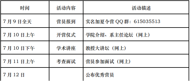 2020年7月9日 学院网站公示入营名单,通过前期群推送夏令营活动链接。