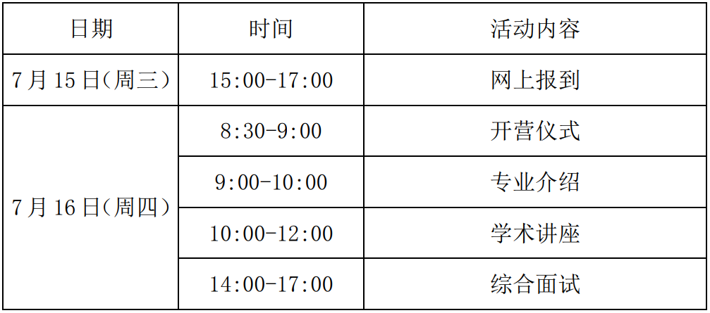 2. 夏令营名额有限,机会宝贵,入营同学须全程参与活动,如不能参加请及时告知我院。