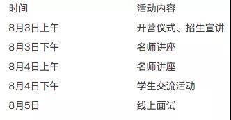 2.入营通知:学院于2020年7月29日前完成资料审核并确定接收名单,并通过电子邮件和短信通知获邀同学本人,请注意查看并及时回复。如果营员因故不能参加夏令营活动,请于8月1日前回复邮件。