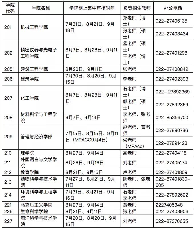 各学院接收推免生网上系统集中审核时间表